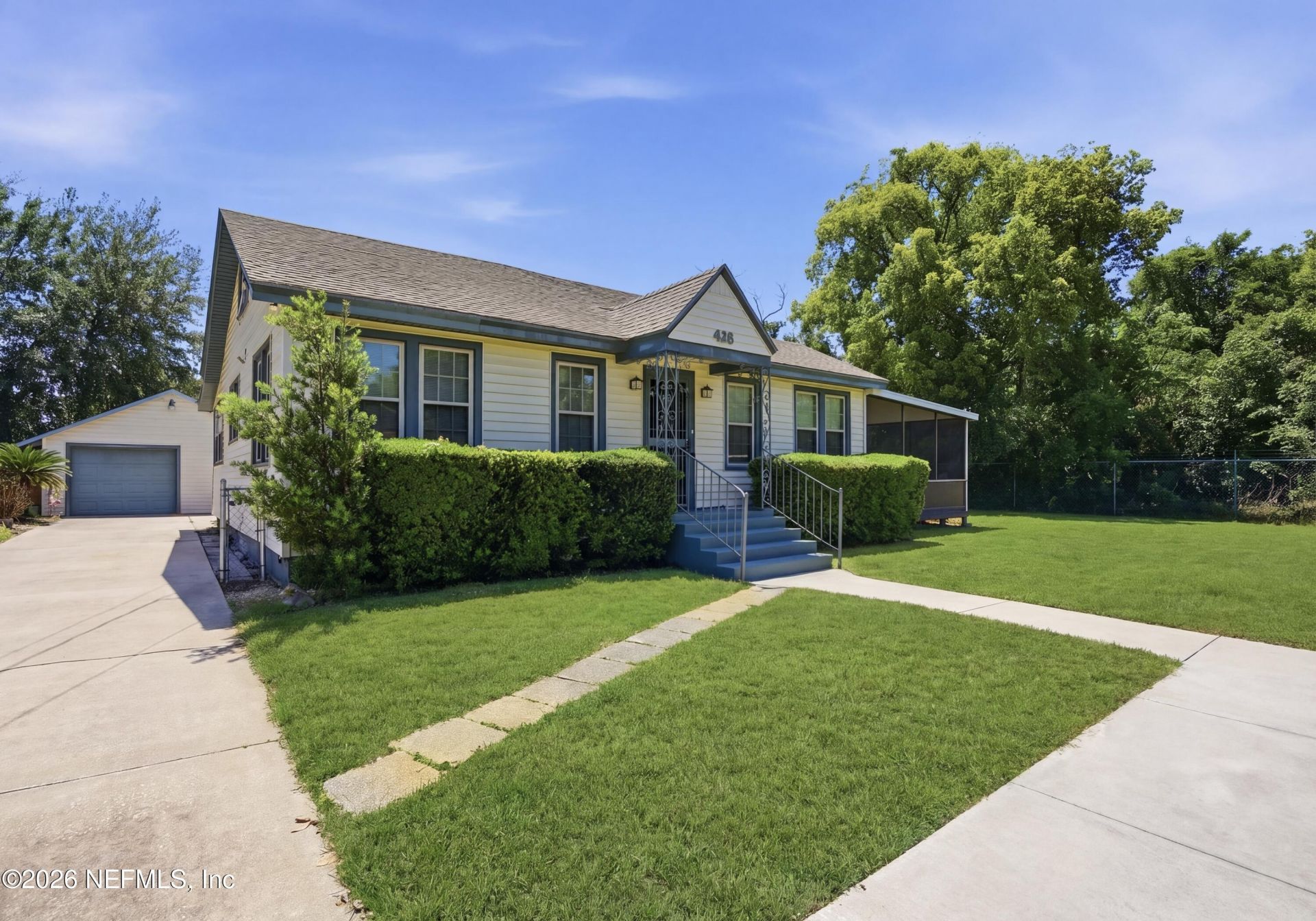 Charming home filled with character! This inviting property offers a detached 1-car garage with office, & covered carport, and extended driveway for ample parking. Inside, enjoy a bright, comfortable layout with natural light throughout, well-sized bedrooms, and a cozy, efficient kitchen with plenty of cabinet space. A standout feature is the unique attic area accessed by eye-catching mint green stairs--ideal for a home office, creative studio, guest space, or additional storage. Relax year-round in the spacious glassed-in patio overlooking the backyard, creating a peaceful extension of your living space. The yard offers room to garden, entertain, or simply enjoy the outdoors. Perfect for first-time buyers, downsizers, or investors seeking charm, versatility, and value in one property. Located on a quiet dead-end street, this home offers added privacy with minimal through traffic. Conveniently situated near major roadways for commuting.